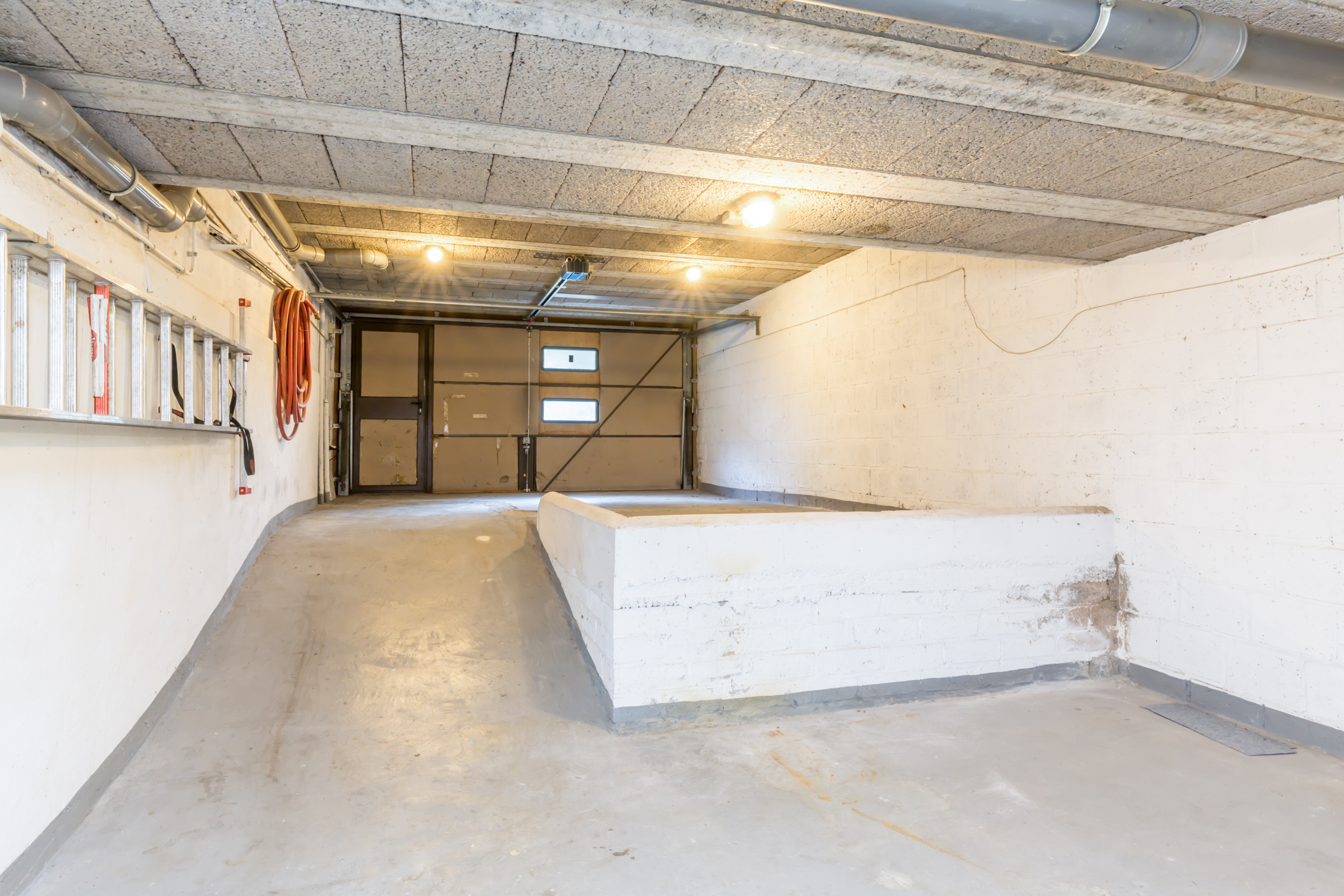 Een wenteltrap brengt u naar het souterrain waar twee kelderruimtes/hobbyruimtes, een sauna met douche en de bijna 12 meter lange garage zijn. De garage is voorzien van elektra en een wateraansluiting en toegankelijk via een kantelpoort met loopdeur.
