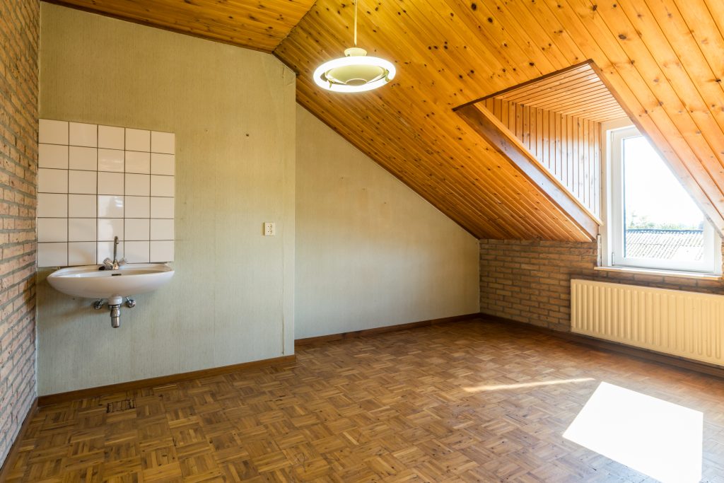 Tevens bevindt zich hier een vierde slaapkamer (circa 16 m²), afgewerkt met een mozaïek eikenhouten vloer, voorzien van een wastafel en dakkapel.