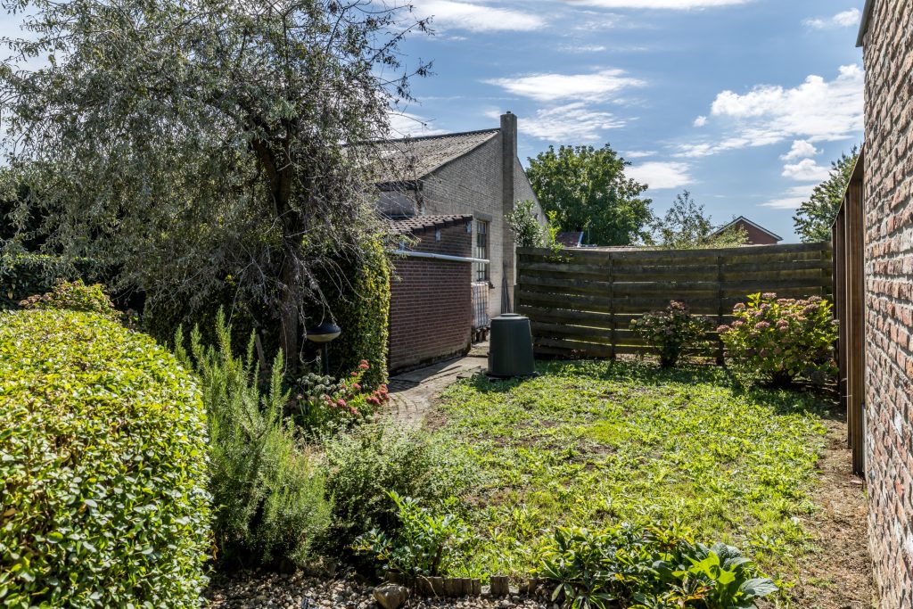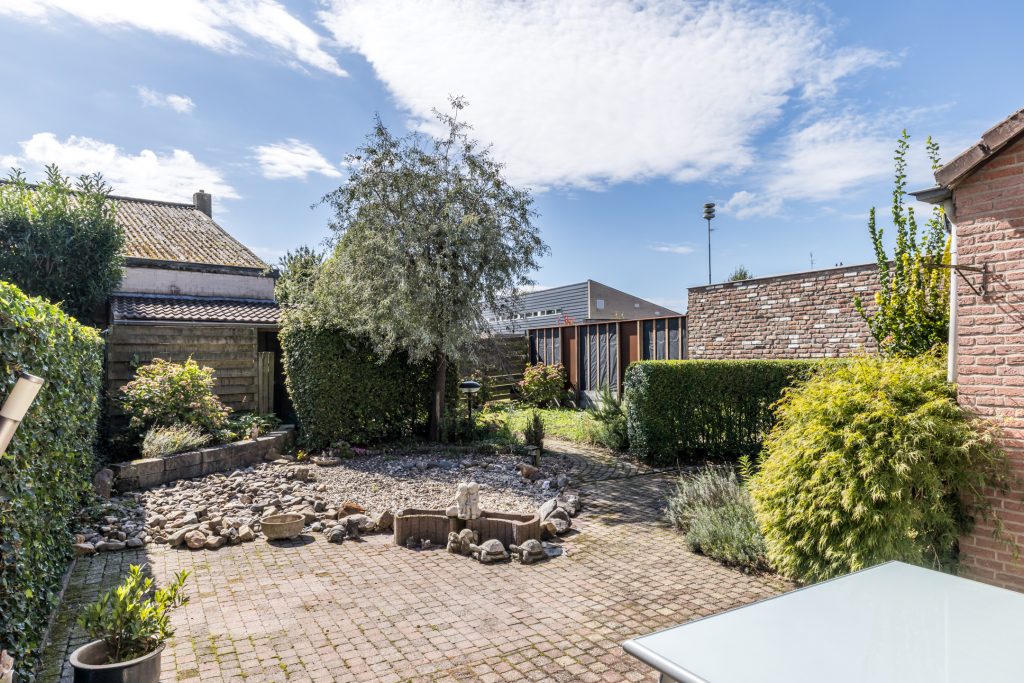 De op het zuiden gelegen achtertuin is voorzien van een terras met zonwering, diverse groene borders en een praktische berging.