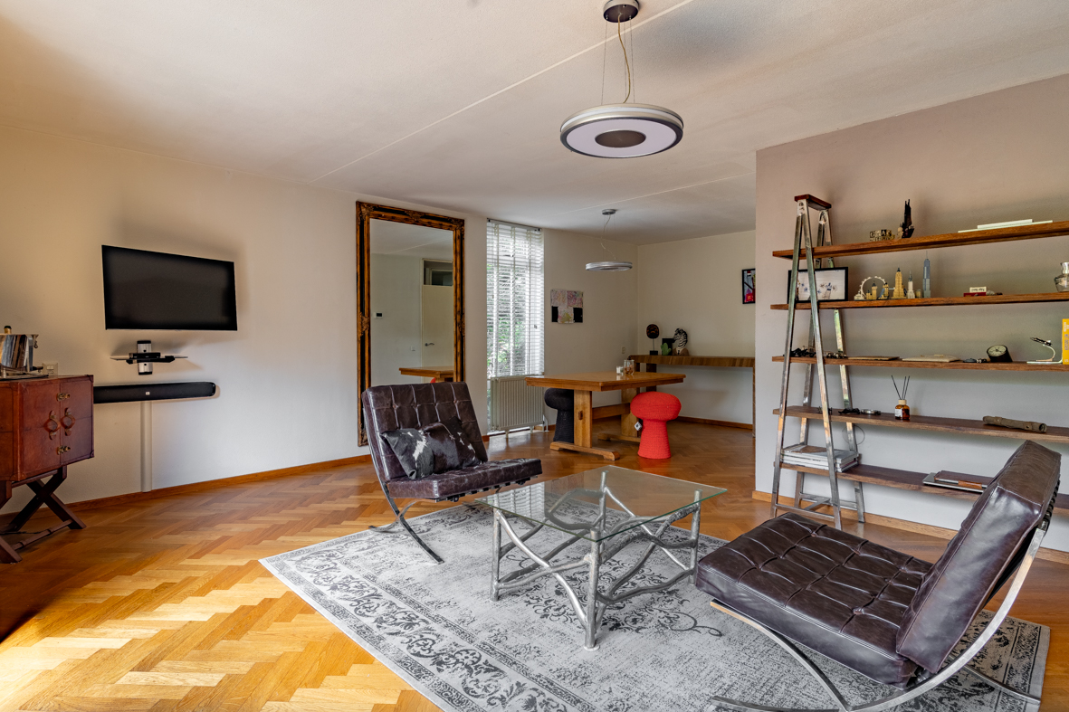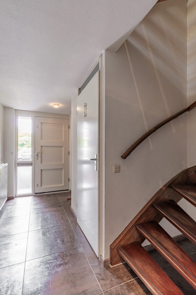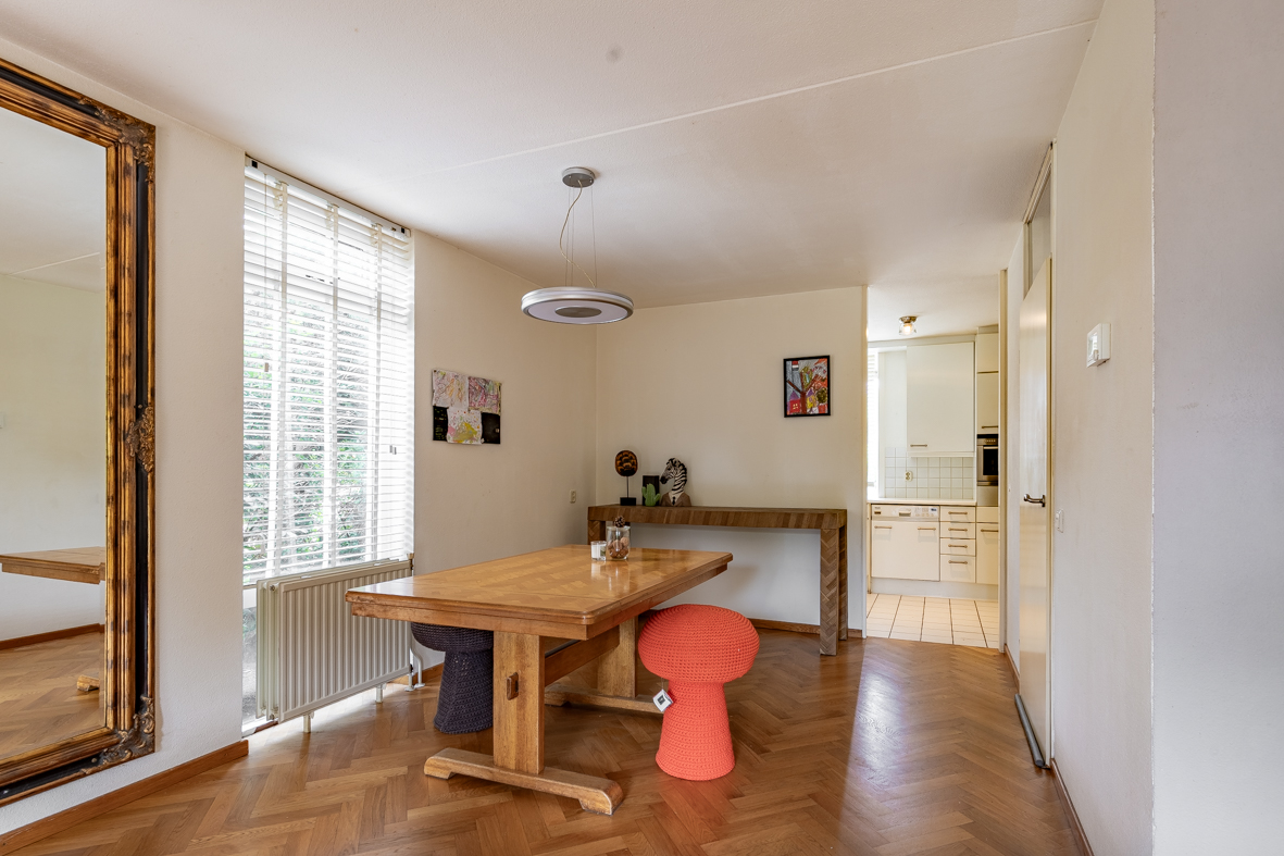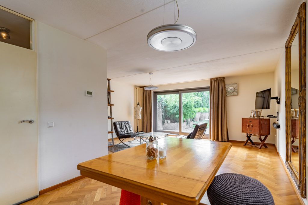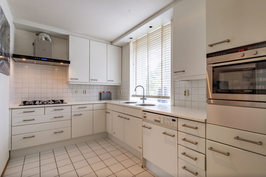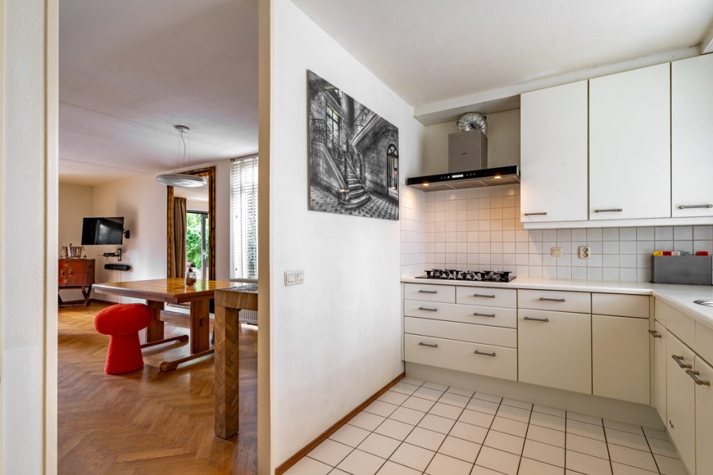 Middels de vaste trap bereikt u de overloop, welke toegang biedt tot de toiletruimte met fonteintje, woonkamer en de keuken. De ruime woonkamer van ca. 34 m² biedt veel daglicht, is voorzien van een visgraat parketvloer en heeft middels de schuifpui een optimaal tuincontact. De gesloten keuken van ca. 9 m² is voorzien van een inbouwkeuken met een 5-pits gaskookplaat, afzuigkap, vaatwasser, koelkast, combi-oven en dubbele gootsteen. Aansluitend aan de keuken bevindt zich de bijkeuken van ca. 3 m², alwaar de aansluiting voor witgoedapparatuur zich bevindt.