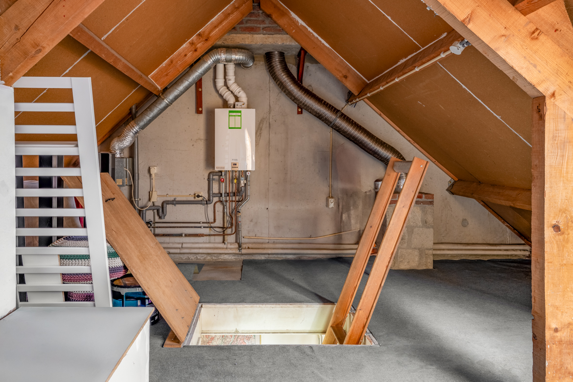 Middels de vlizotrap bereikt u de zolderverdieping van ca. 15 m², alwaar de cv-installatie en de mechanische ventilatie-unit geplaatst is. Deze verdieping is voorzien van een dakraam en zou geschikt zijn om eventueel een extra slaapkamer te realiseren.