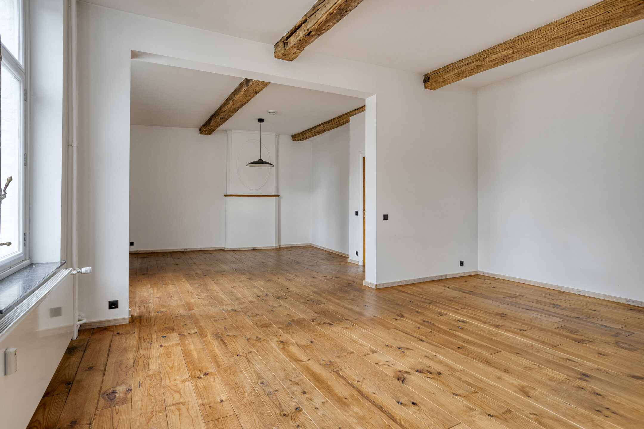 De afwerking is zeer verzorgd en combineert hedendaags comfort met het behoud van authentieke elementen, die het geheel extra charme en karakter geven. Een bijzonder appartement op een toplocatie, waar historie en modern wooncomfort harmonieus samenkomen.