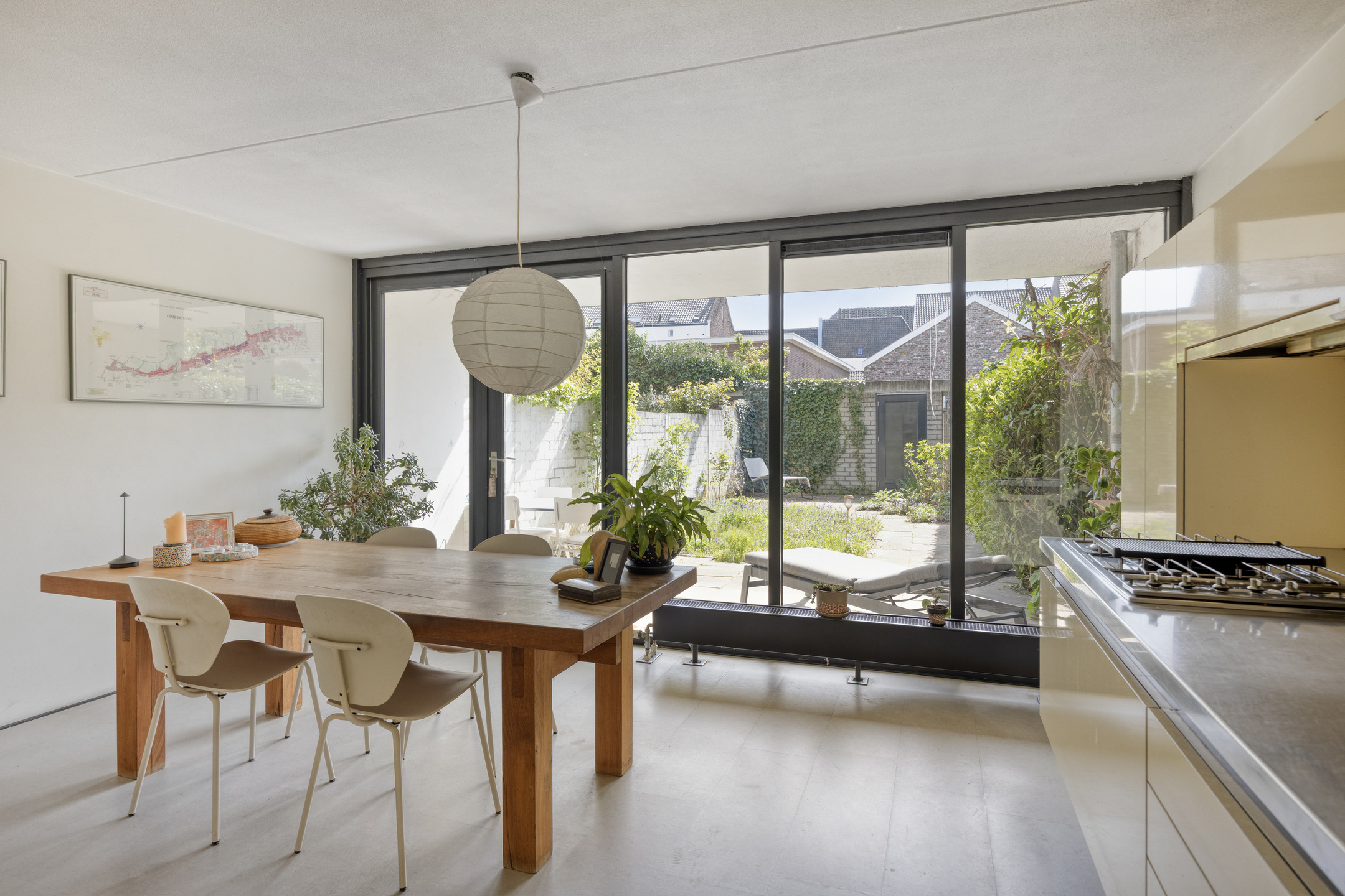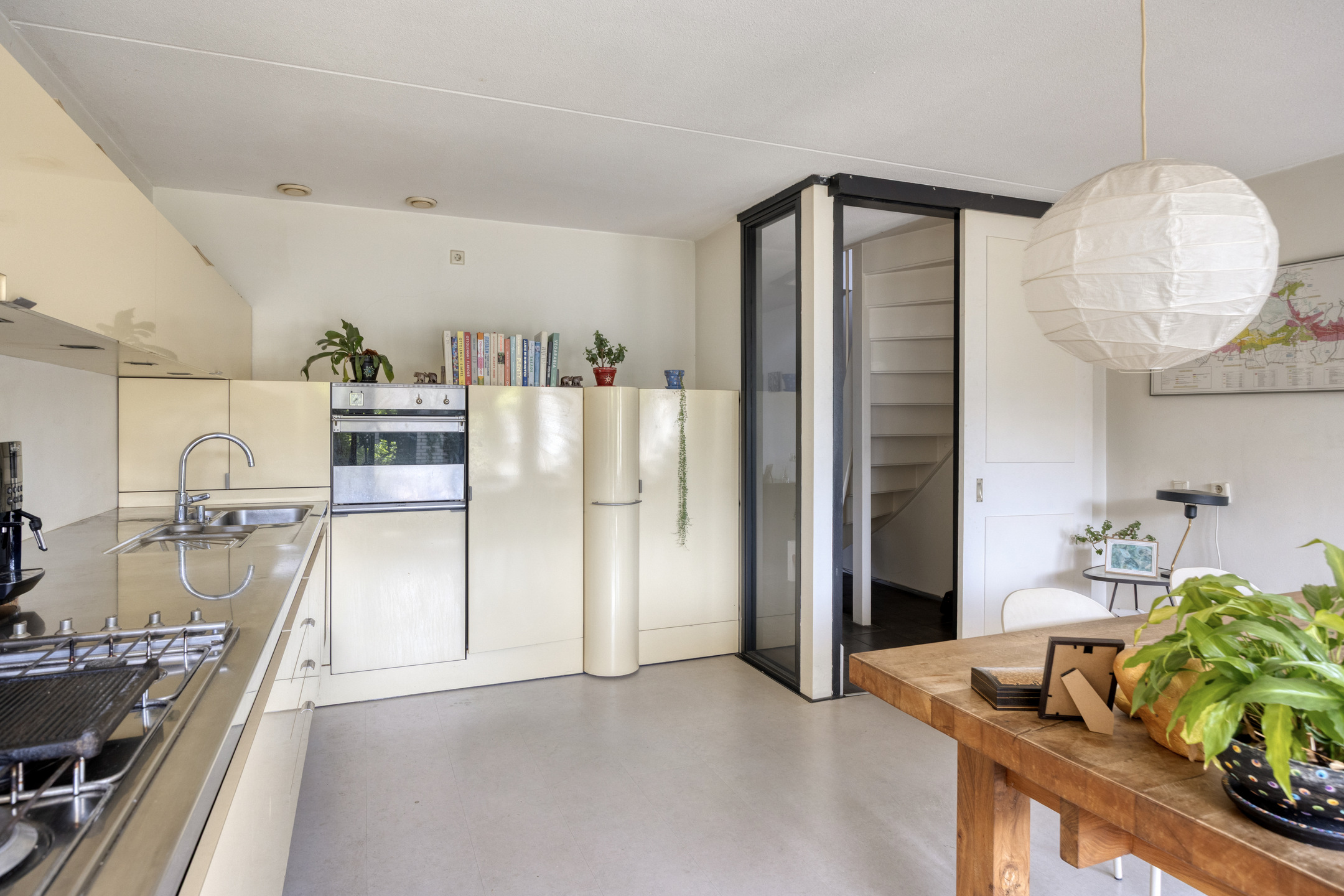 Het echte hart van de woning bevindt zich op de begane grond: de woonkeuken. Uitgevoerd in een vrolijke zachtgele kleur. Dankzij de dubbele openslaande deuren heeft u hier een prachtig contact met de zonnige stadstuin op het zuiden, die fraai is aangelegd en een eigen achterom biedt. De tuin beschikt bovendien over een handige fietsenberging, waardoor binnen- en buitenleven naadloos in elkaar overlopen.
