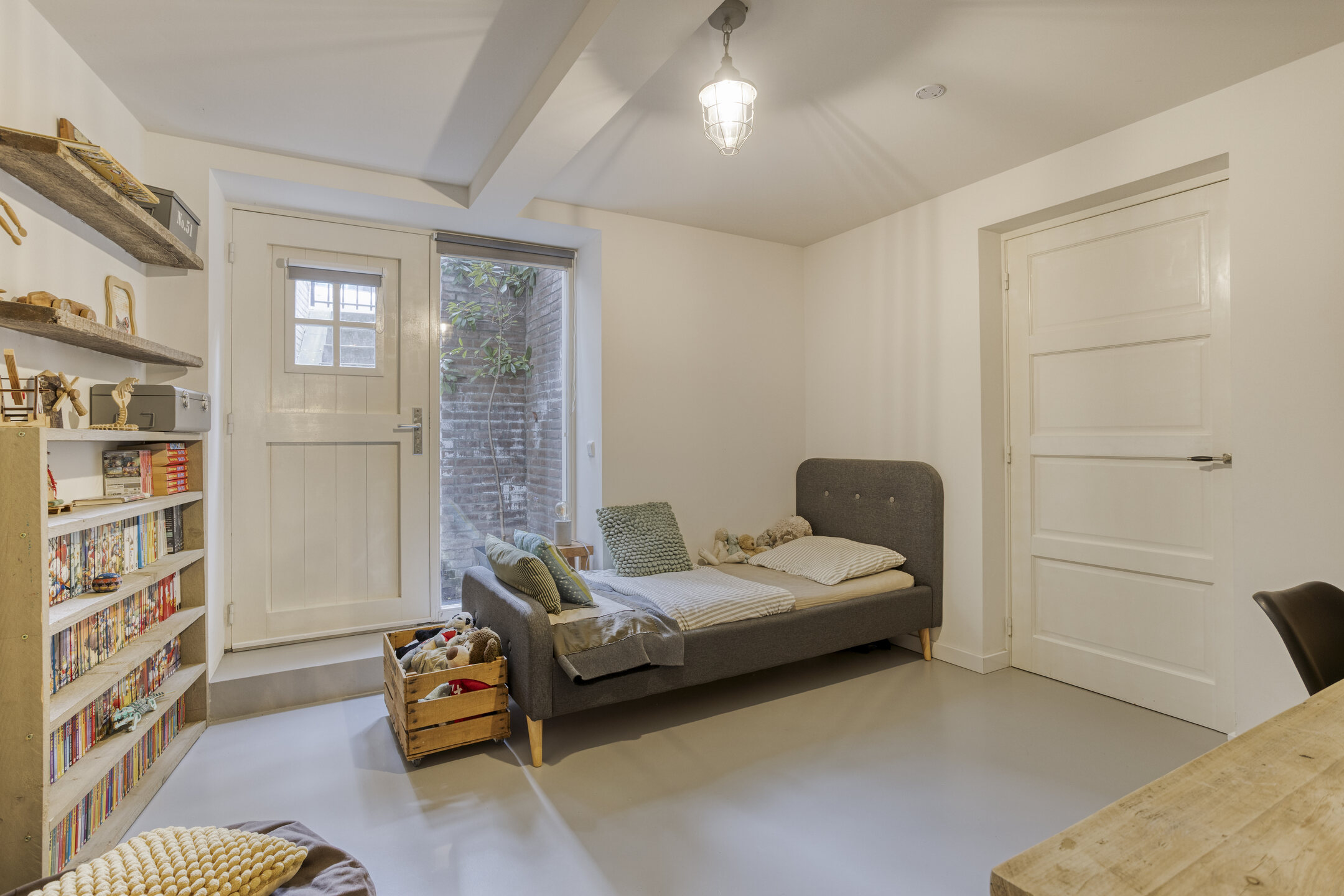 Een openslaande deur in de slaapkamer brengt u bij de trap naar de voortuin, dit maakt deze ruimte ook een ideaal kantoor aan huis!