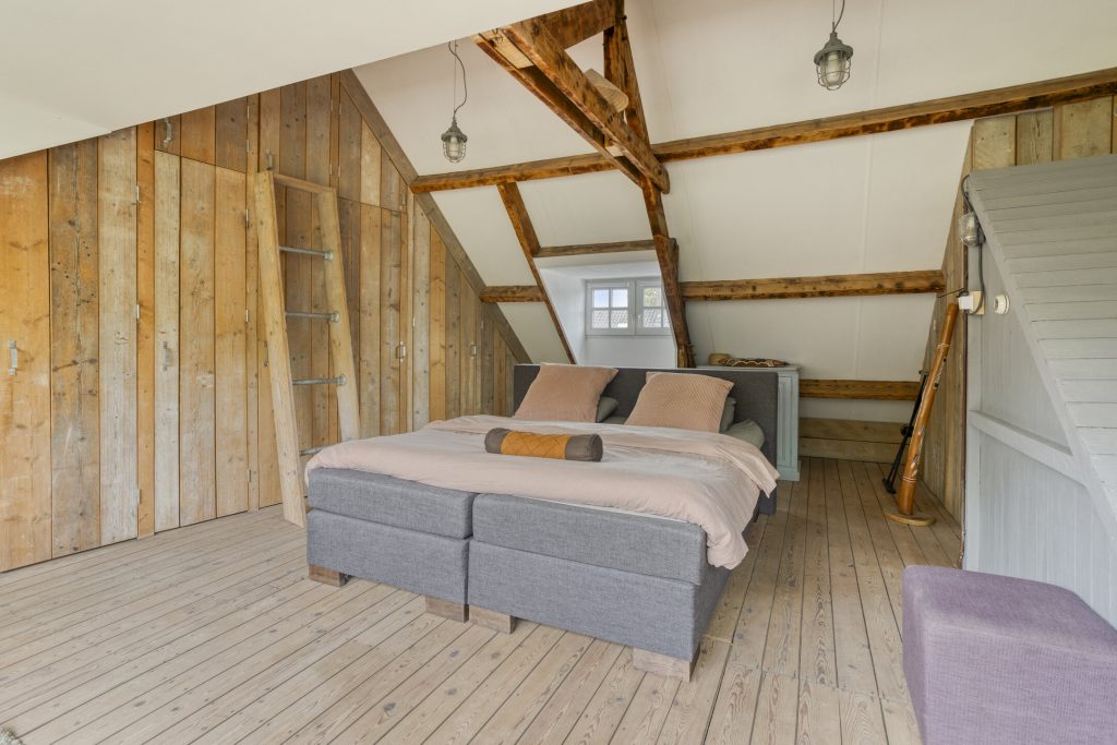De trap volgt zijn weg naar de tweede verdieping. Hier is een grote slaapkamer van liefst 34 m² met royaal dakkapel gelegen, een echte master bedroom!