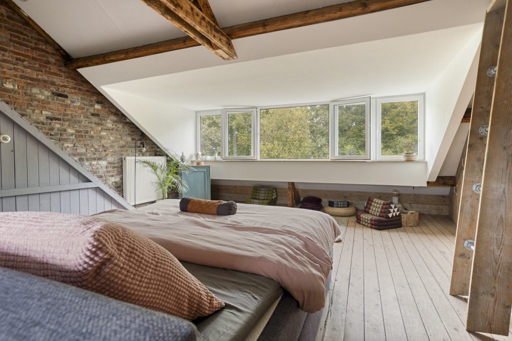 De dakkapel zorgt hier niet alleen voor een zee aan natuurlijk lichtinval maar ook een zee aan ruimte. In de toekomst zou het zelfs mogelijk zijn om hier extra sanitair zoals een vrijstaand bad te plaatsen!