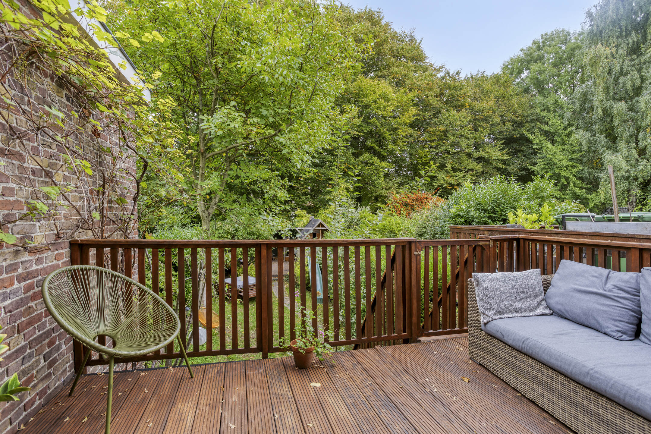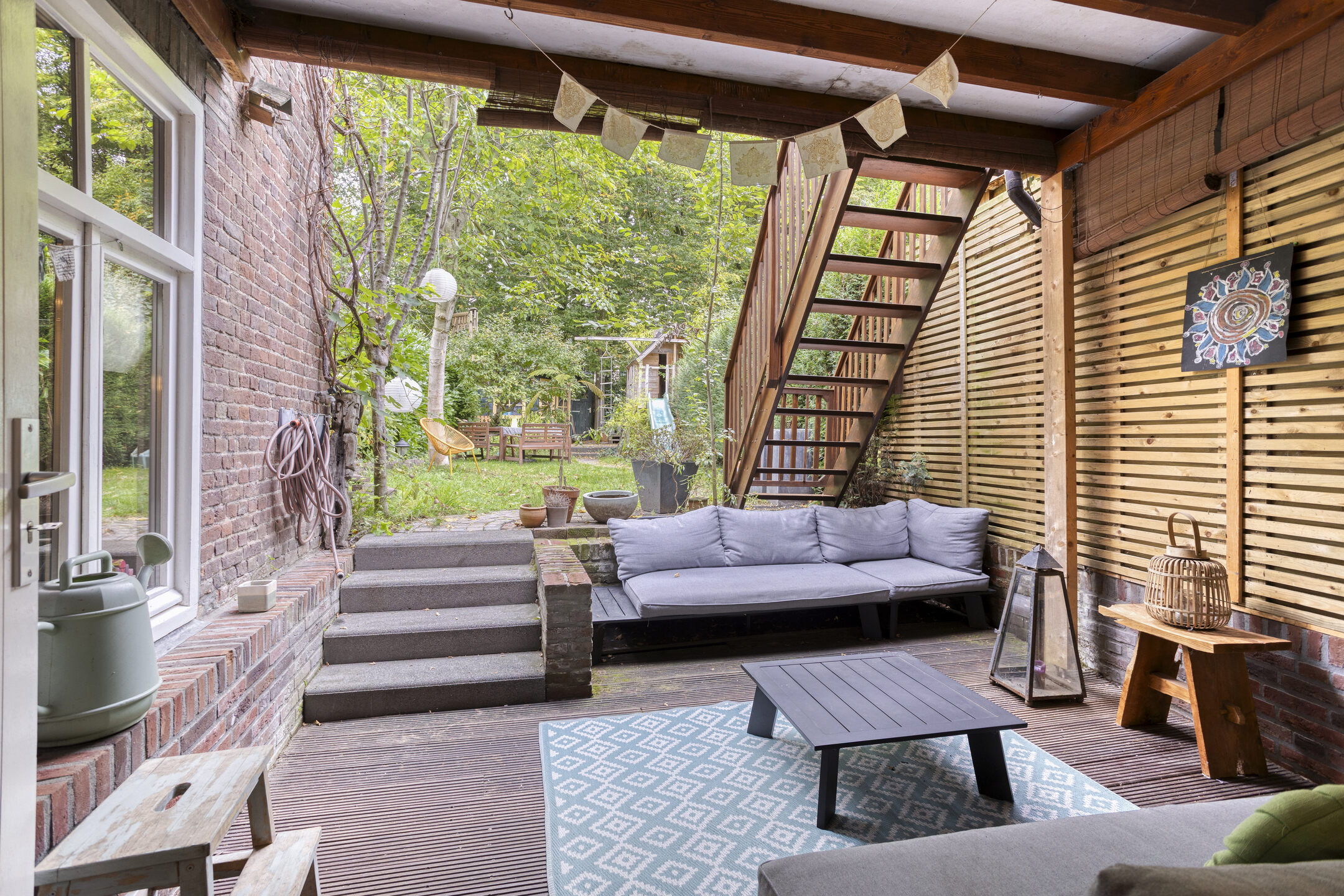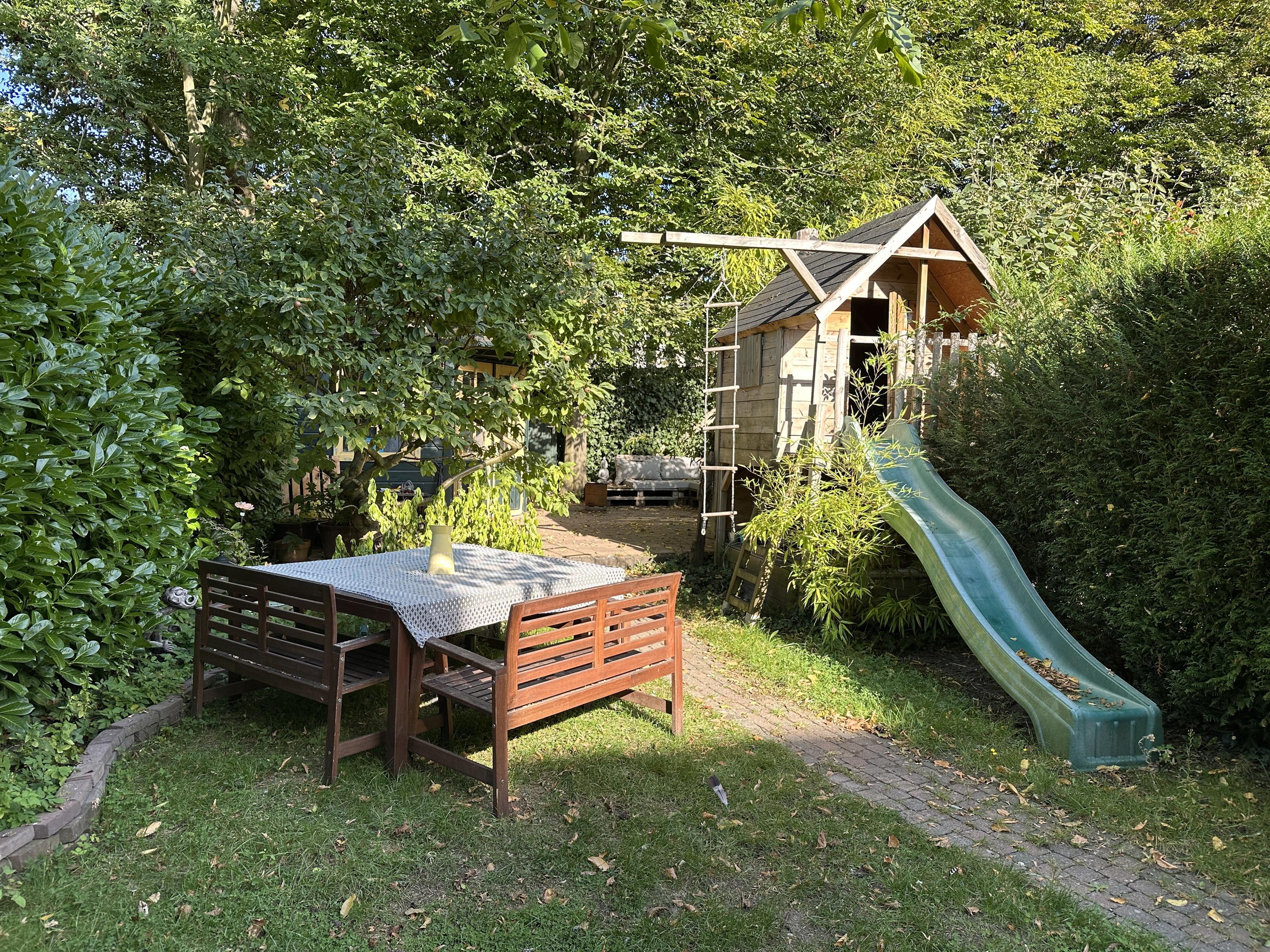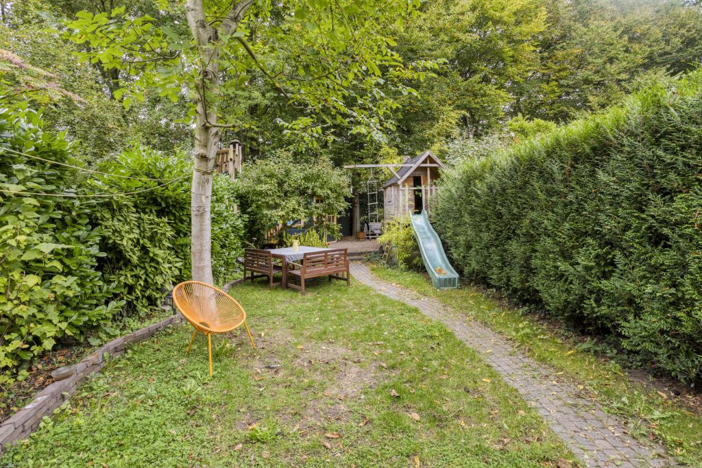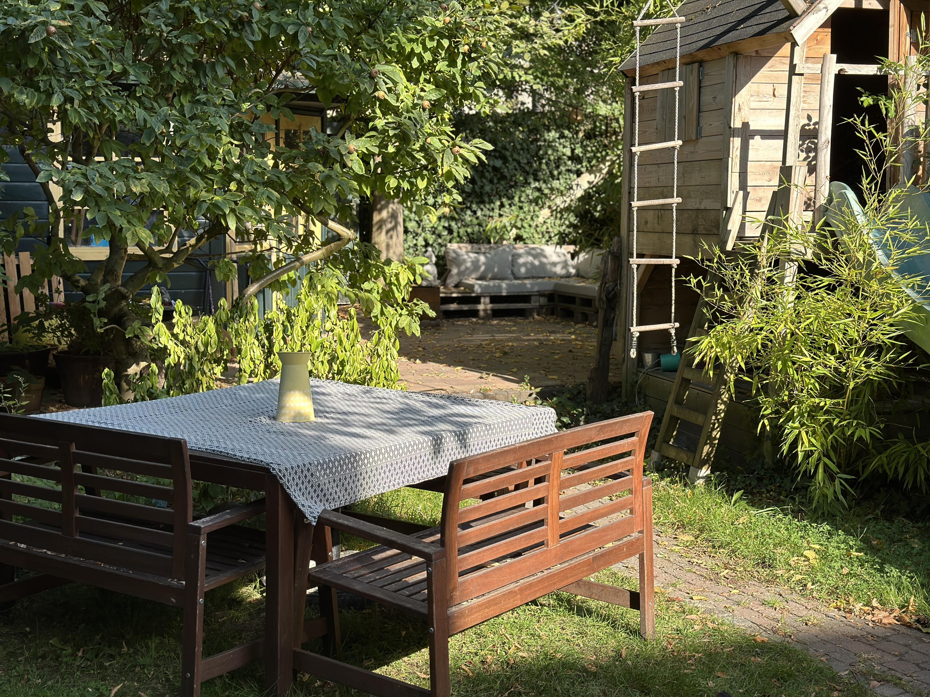 De speelse tuin heeft verschillende zithoekjes waar u heerlijk kunt genieten, zo is er altijd een plekje in de zon of juist in de schaduw tijdens de warme zomerdagen. Door het vele groen in de tuin komt het met regelmaat voor dat u vrolijke vogeltjes of zelfs een eekhoorntje over de vloer hebt. Komt u dit idyllische beeld zelf bekijken tijdens een bezichtiging?