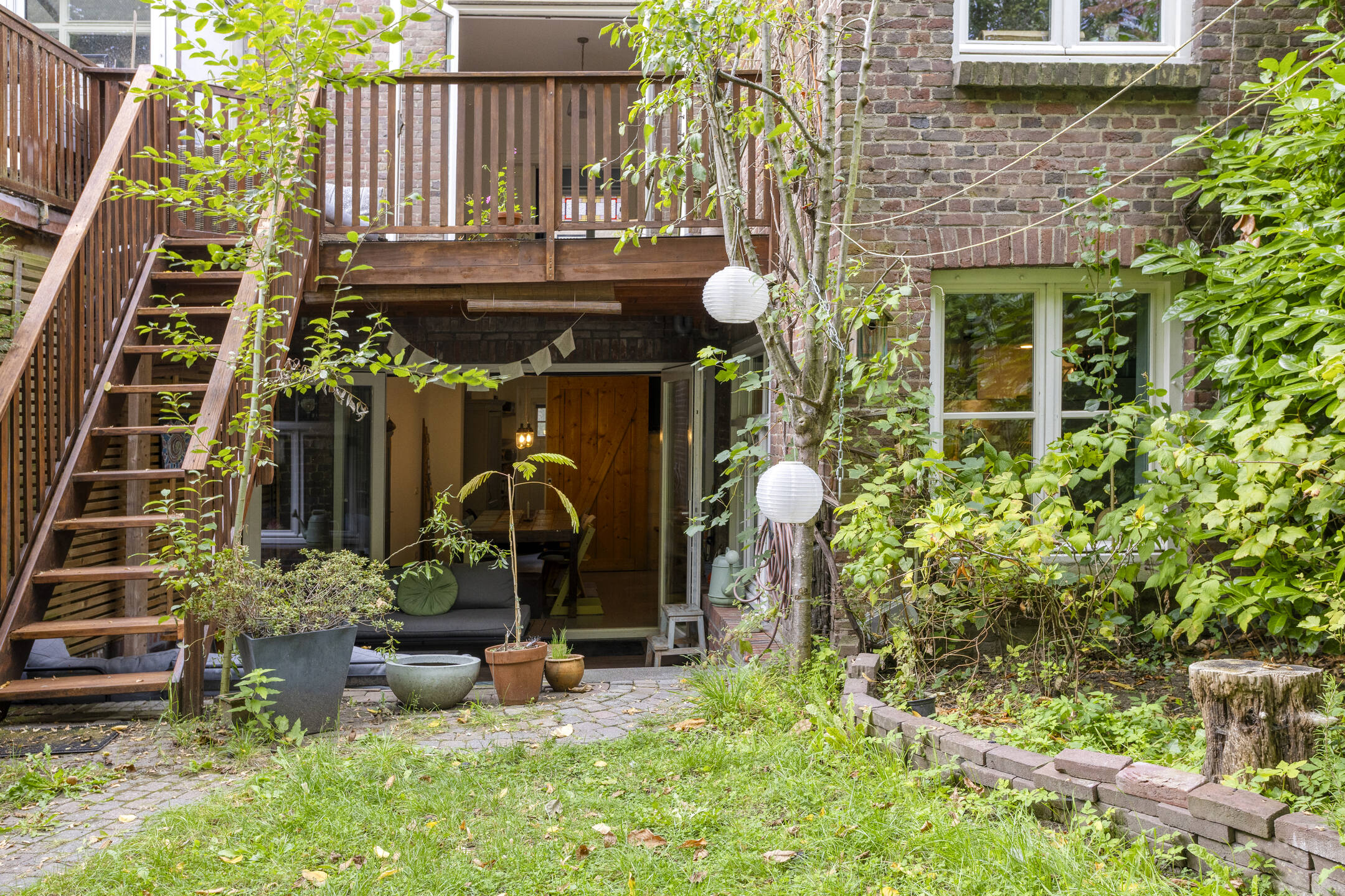 Via een trap vanaf het terras en via het souterrain is de goed onderhouden tuin te bereiken.