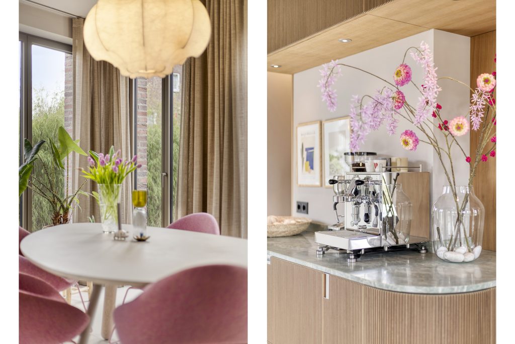 Uiteraard is de keuken uitgerust met hoogwaardige apparatuur, waaronder een Quooker, een Italiaanse oven én pizzaoven, een klimaatkast en een inductiekookplaat met geïntegreerde afzuiging.