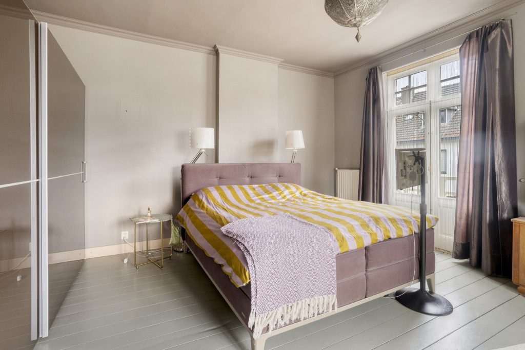 De trap leidt verder naar de master bedroom: een royale slaapkamer van ca. 23m², gelegen op de hoek en daardoor voorzien van een zeer aangename lichtinval. Bovendien beschikt deze kamer over een charmant balkon.