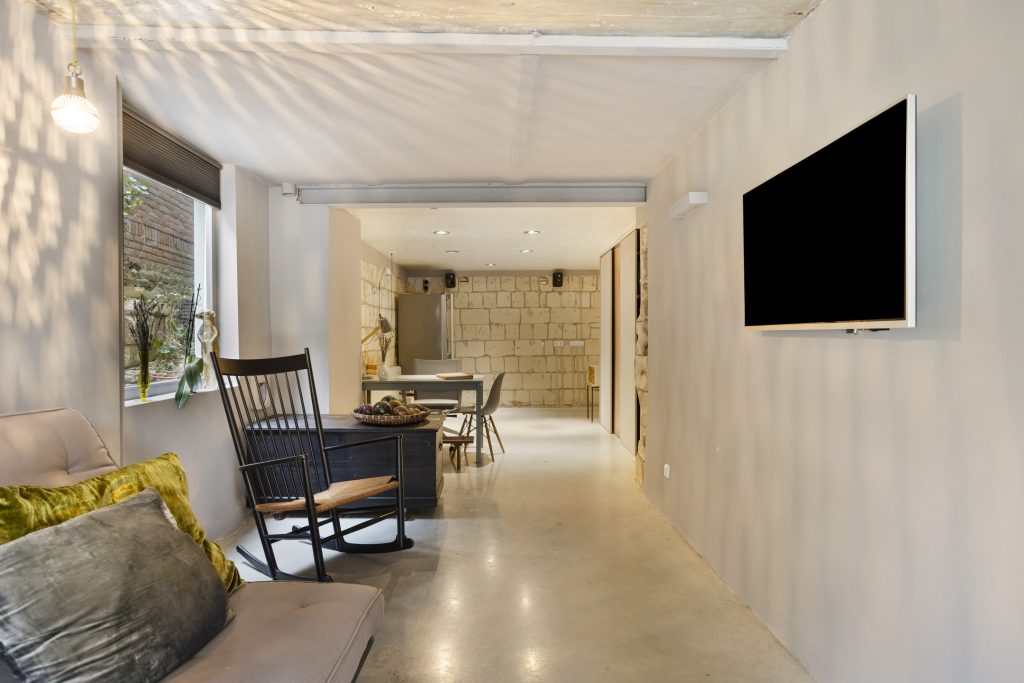 Via de hal bereikt u het royale en multifunctionele (woon)souterrain, volledig voorzien van vloerverwarming en een gevlinderde betonvloer. De karakteristieke mergelmuren benadrukken hier de historie en het authentieke karakter van de woning.