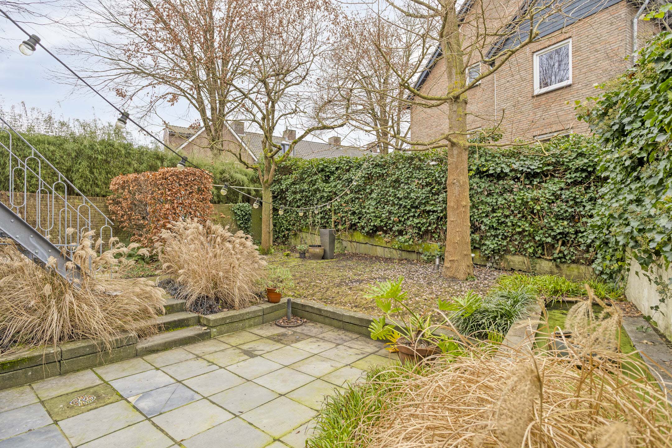 De goed onderhouden tuin is zowel via een trap vanaf het balkon als via het souterrain bereikbaar. De tuin is omringd door niet-woekerende bamboe en is door een tuinarchitect onderhoudsvriendelijk aangelegd.