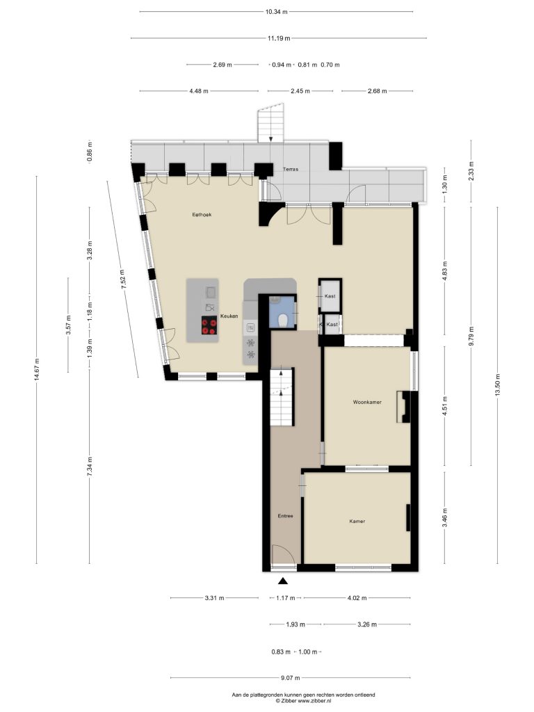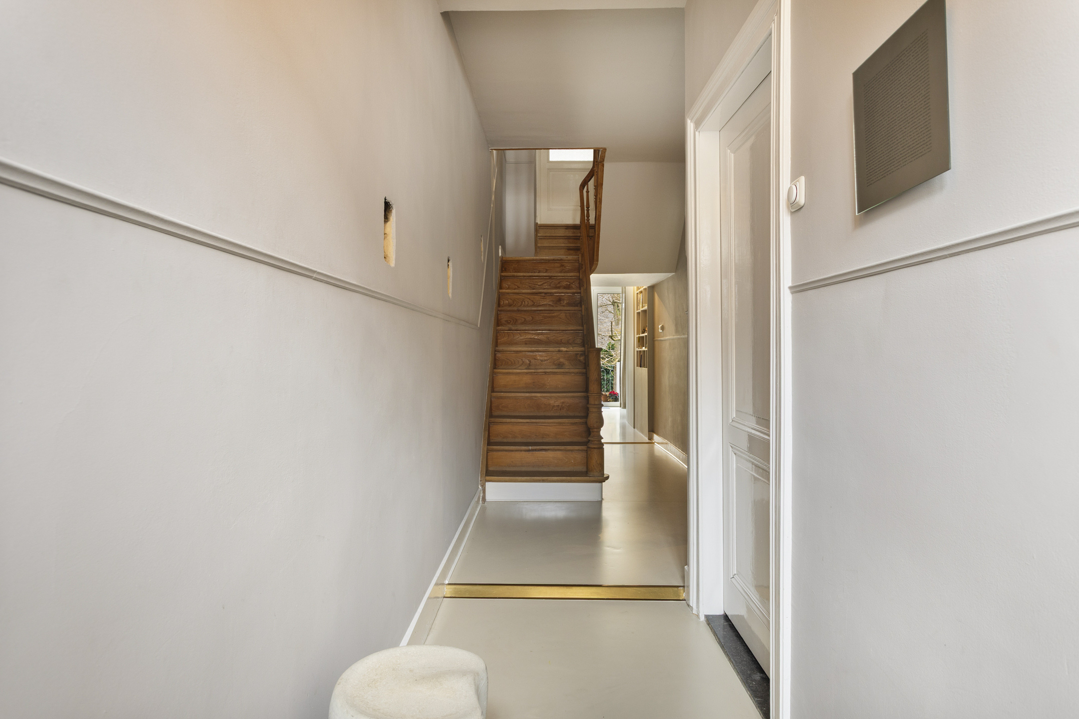 U betreedt de woning via de hal, waar direct de authentieke trapopgang naar de verdiepingen in het oog springt. Vanuit hier heeft u toegang tot de verschillende vertrekken op de begane grond.