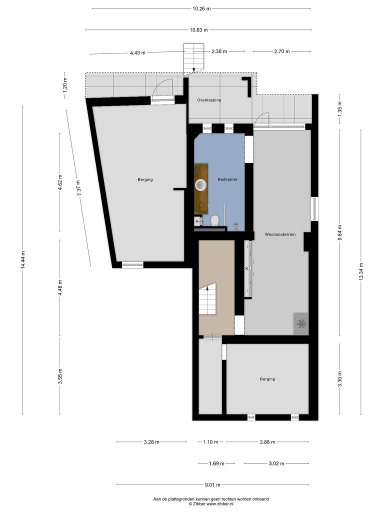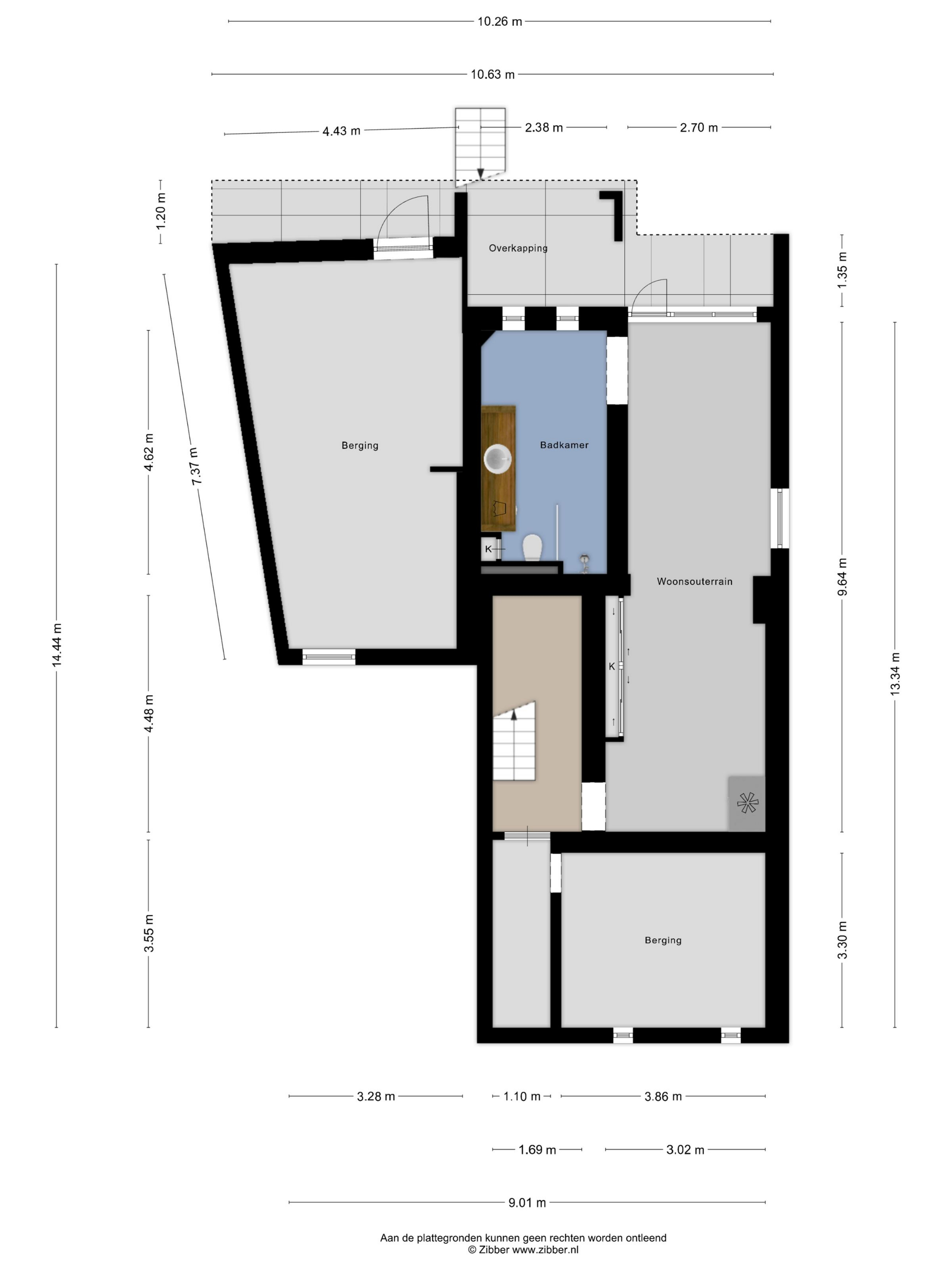 – de witgoedaansluiting bevindt zich in de badkamer van het souterrain;