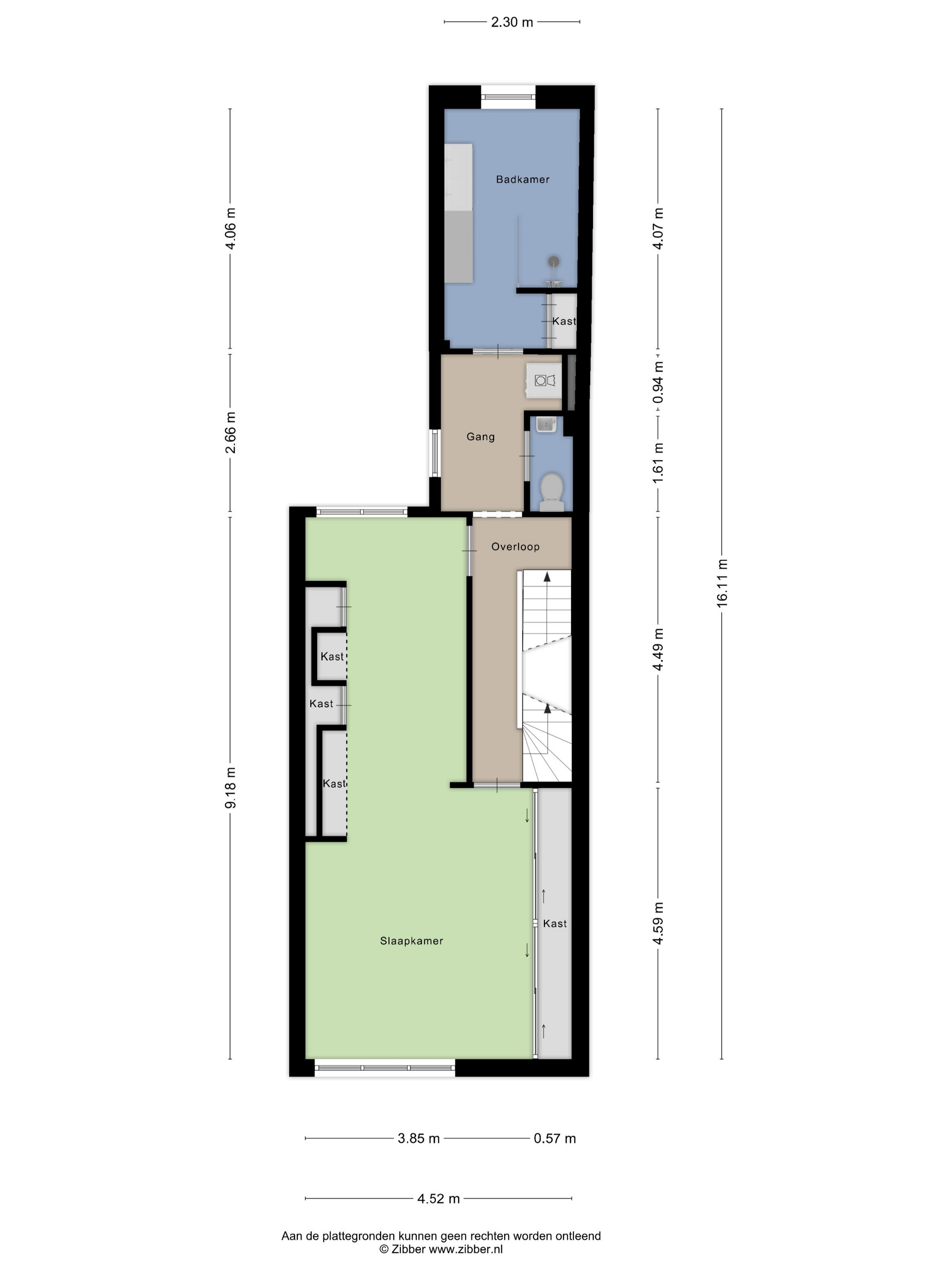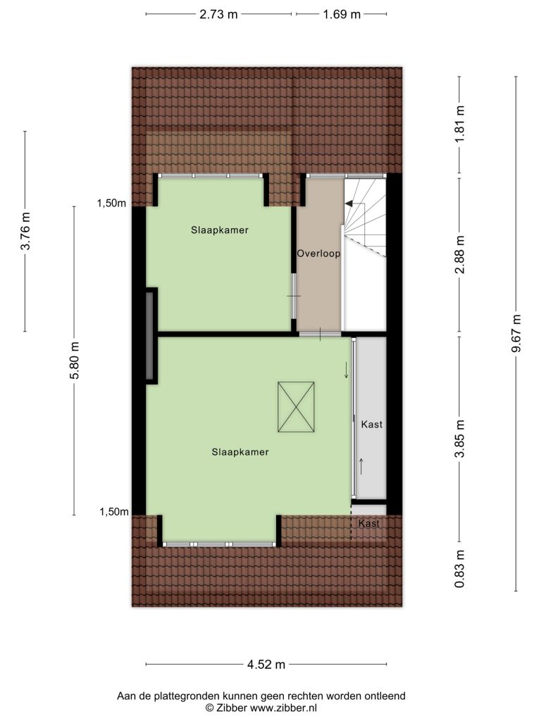 De slaapkamer aan de achterzijde is eveneens uitgerust met dakkapel en ca. 10m² groot.