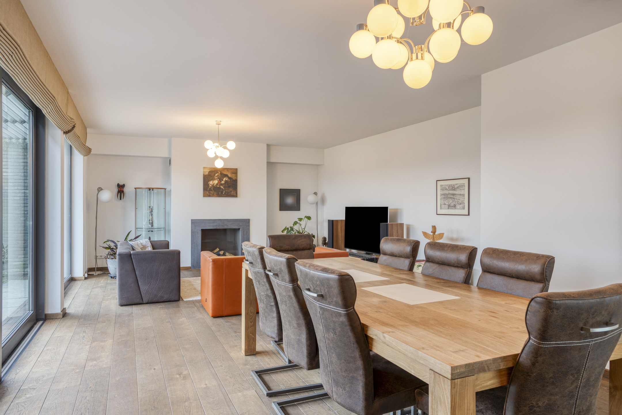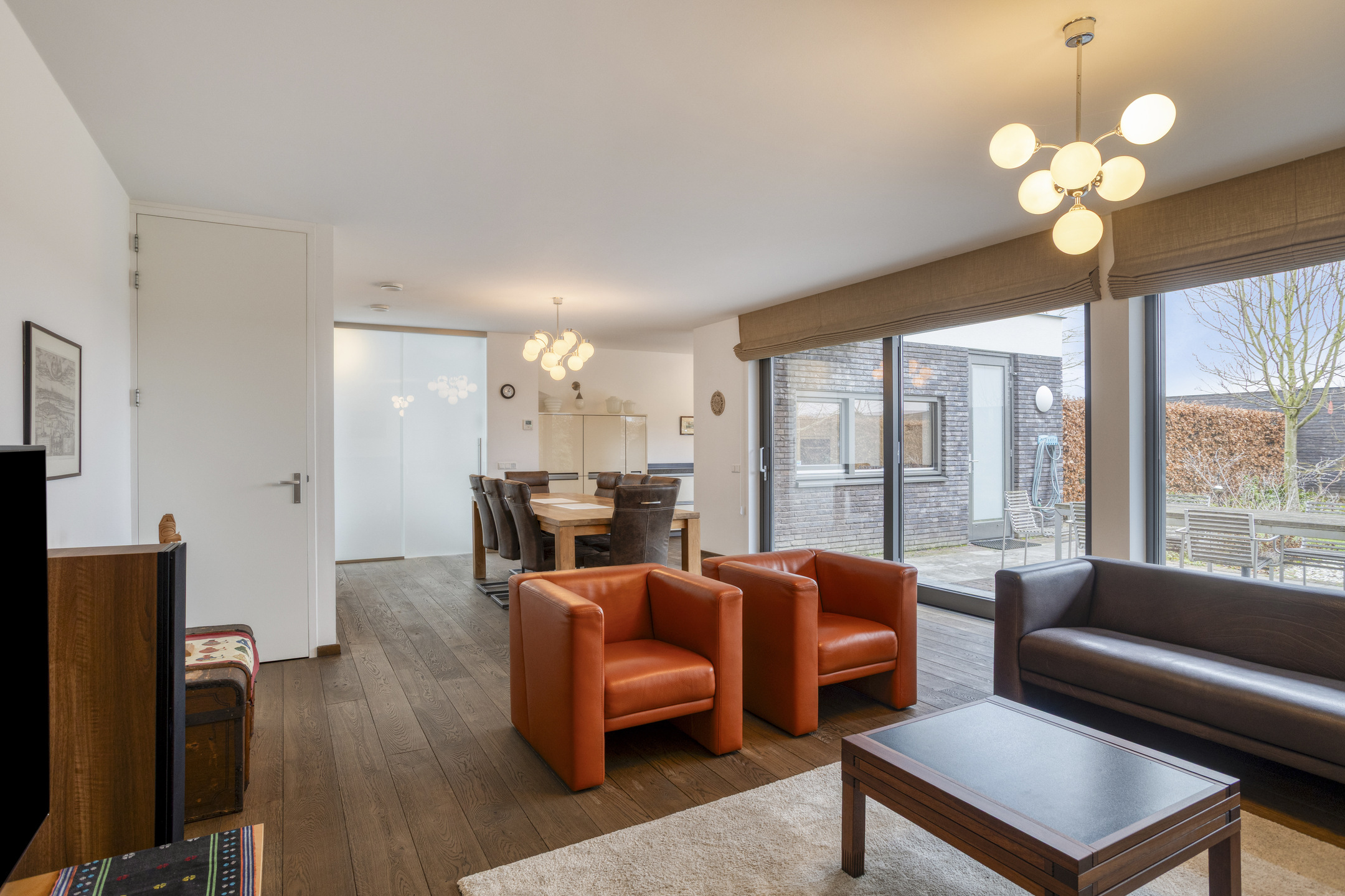U komt binnen in de royale leefruimte van ca. 53 m², waar licht en ruimte direct opvallen. Dankzij de grote schuifpui in de woonkamer en de raampartij in de keuken is er sprake van een prachtige lichtinval én een optimaal contact met de tuin. De sfeervolle gashaard vormt een warm middelpunt in de woonkamer.