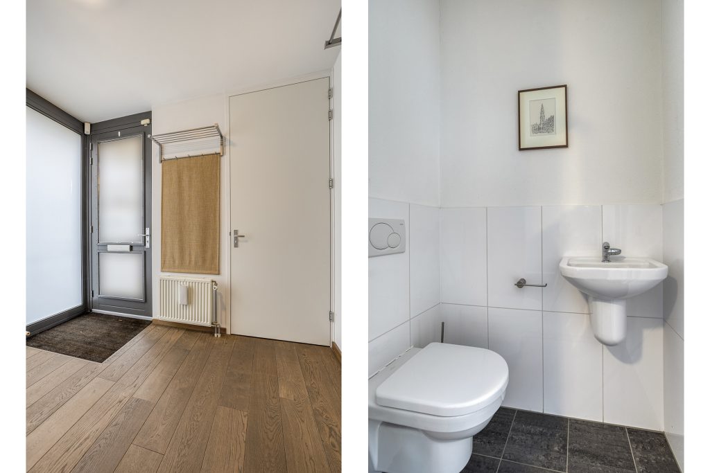 Via de nette entree heeft u toegang tot de meterkast, garderobe, het toilet met fonteintje en het trappenhuis naar de verdiepingen. Vanuit de hal bereikt u tevens de leefruimte.