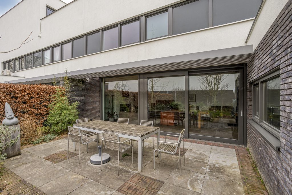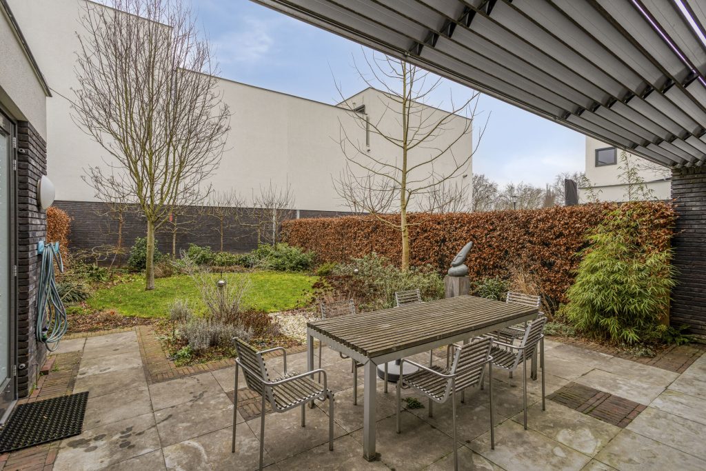 De op het zuiden gelegen tuin is keurig onderhouden en biedt een prettige afwisseling tussen groen en bestrating. Het terras, direct gelegen aan de schuifpui, vormt een heerlijke plek om in alle rust te genieten.