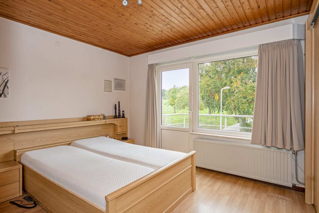 Via de overloop zijn er 3 slaapkamers en een badkamer bereikbaar. Slaapkamer 1 van ca. 11 m² is voorzien van een vaste kast. Slaapkamer 2 van ca. 14 m². Slaapkamer 3 van ca. 14 m² biedt toegang tot het balkon, dat een schitterend uitzicht over de omgeving biedt. De betegelde badkamer van ca. 6,5 m² is voorzien van een vaste wastafel, toilet, ligbad en douche.