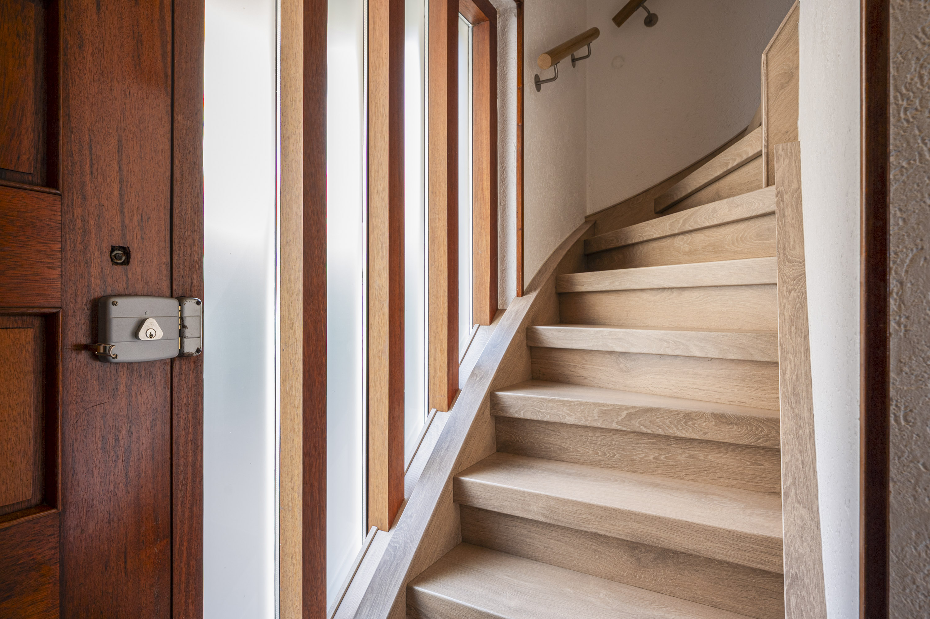 Met uitzondering van de badkamer is deze verdieping voorzien van een laminaatvloer.